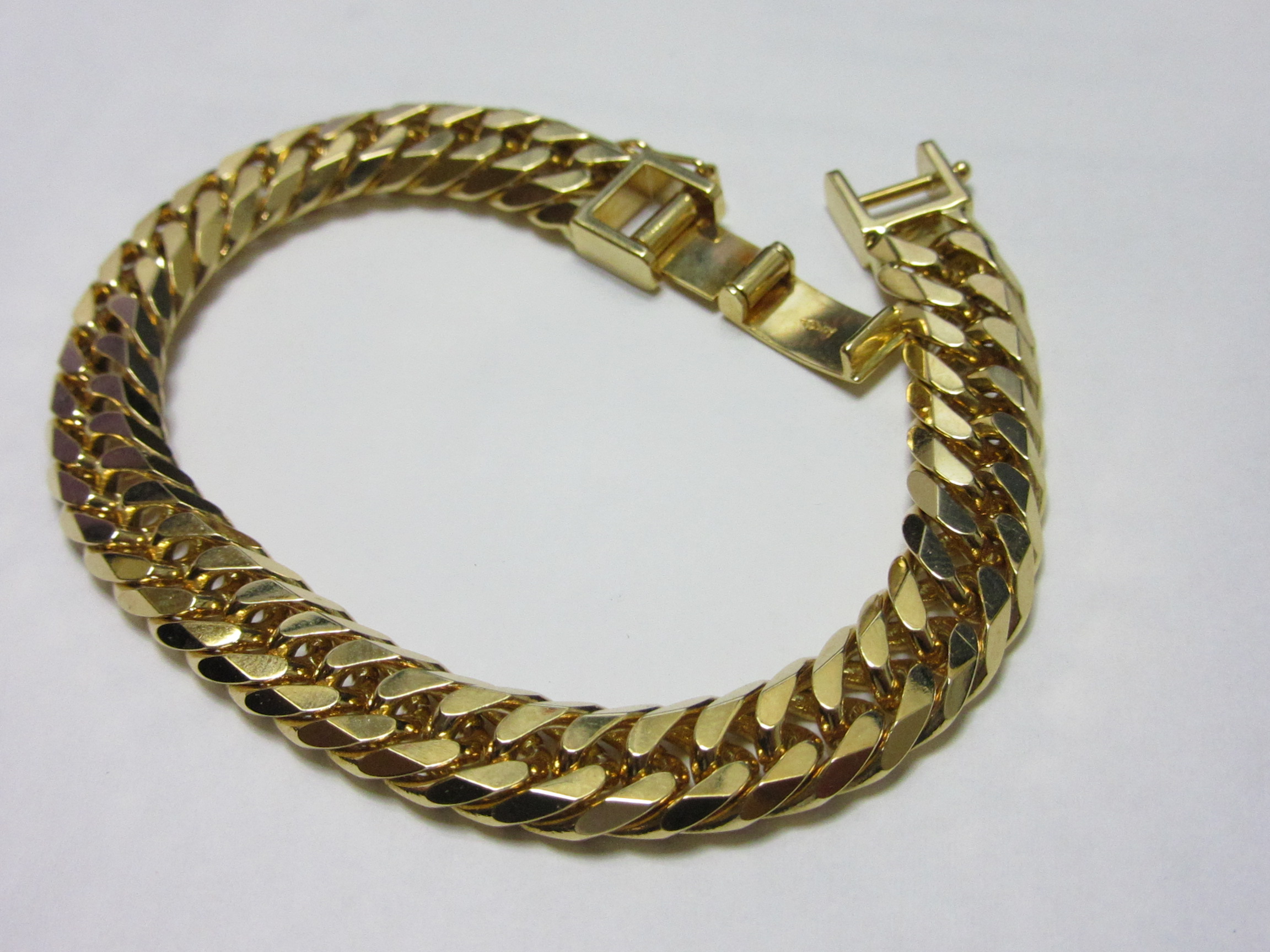 K18YG無垢製 45.25g 6面ダブル喜平 18cm ブレスレット 造幣局刻印