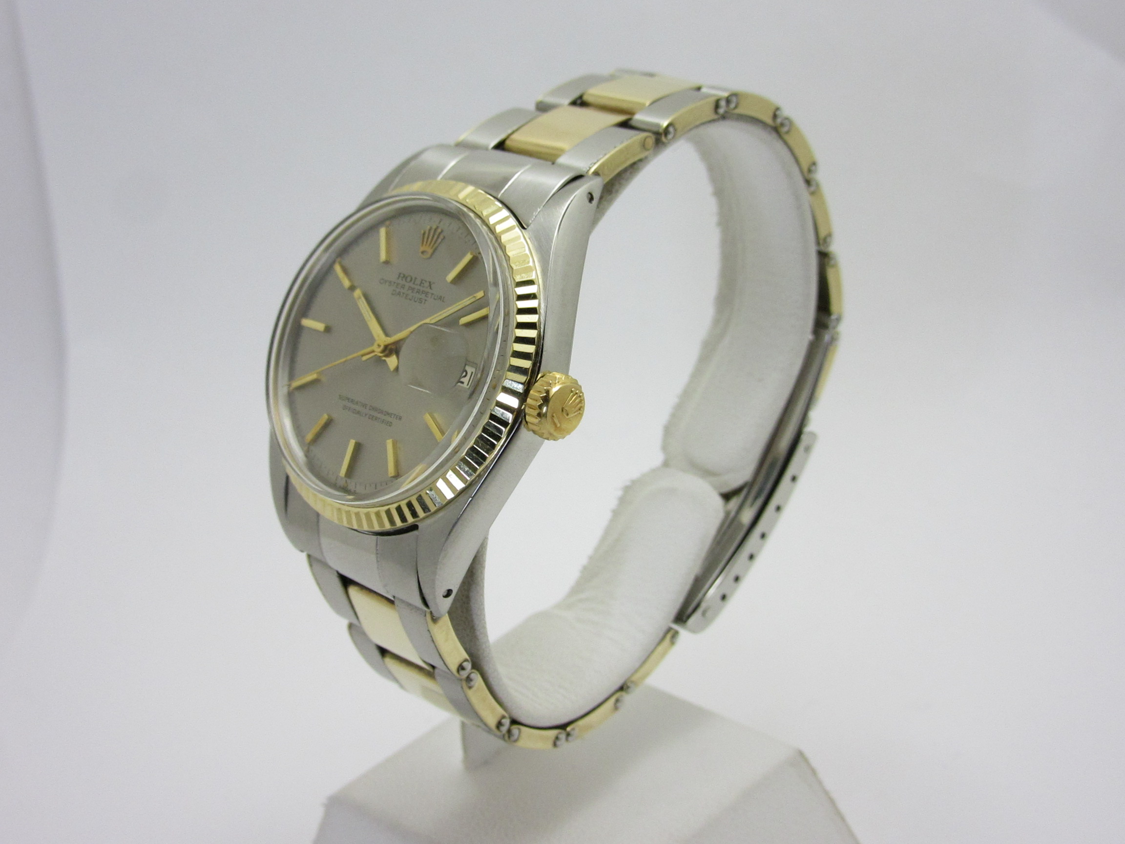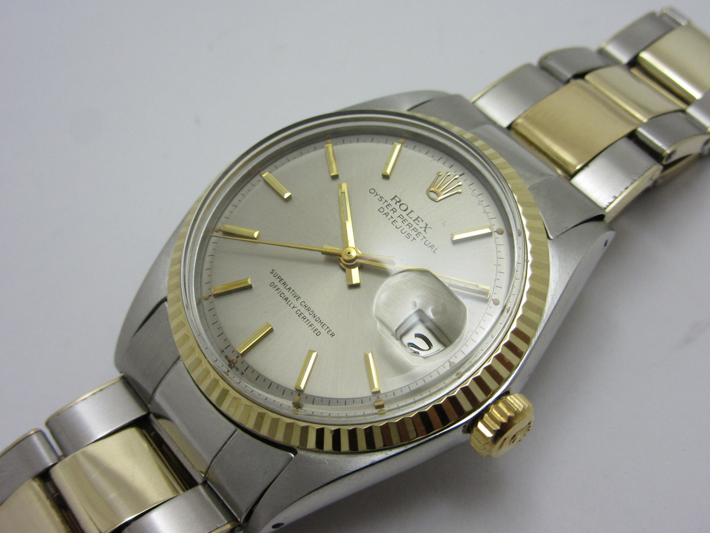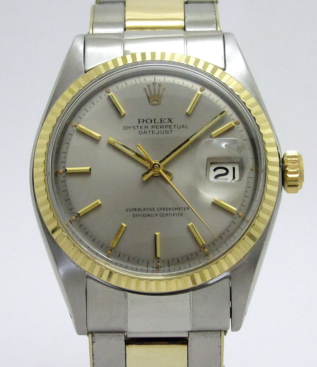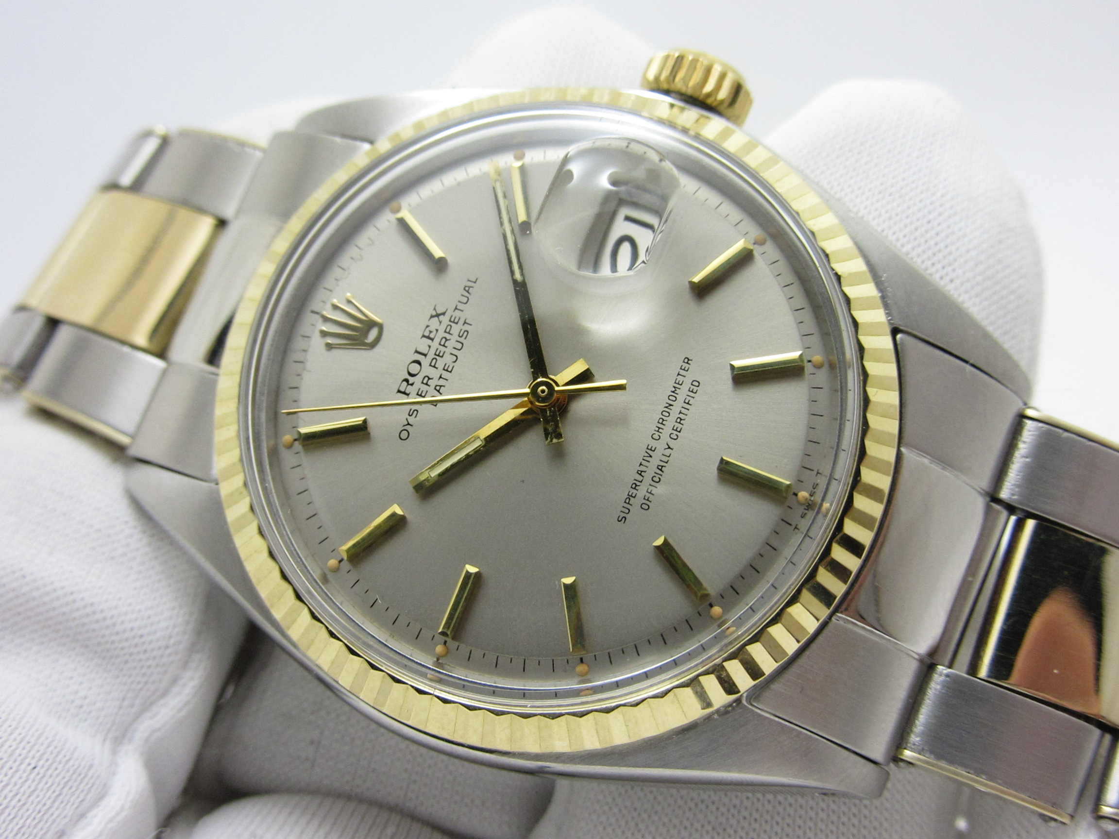 ロレックス ROLEX ”シルバーダイヤル デイトジャスト Ref-1601/3 ” フルトリチウム Sir-200****(1969年製) 自動巻機械式ムーブCal-1570 オイスターリベットYGxSSブレスレットFF58/69-2
