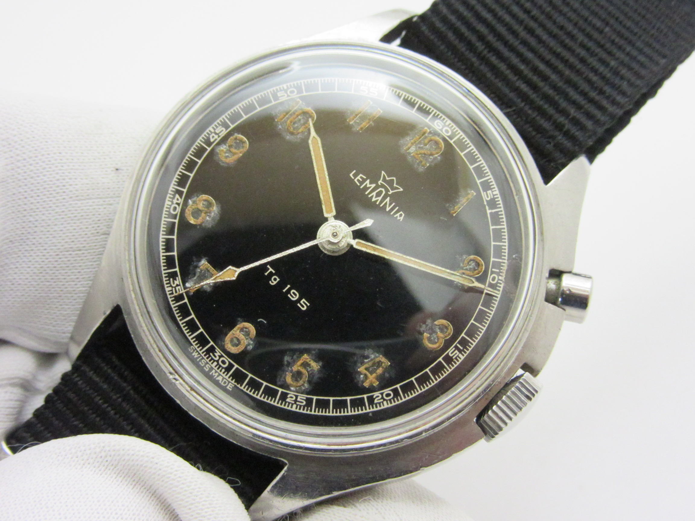 LEMANIA レマニア ”ブラックミラーダイヤル スウェーデン空軍 Tg195” 1957年製 ワンプッシュクロノグラフ 弊社にてOH済