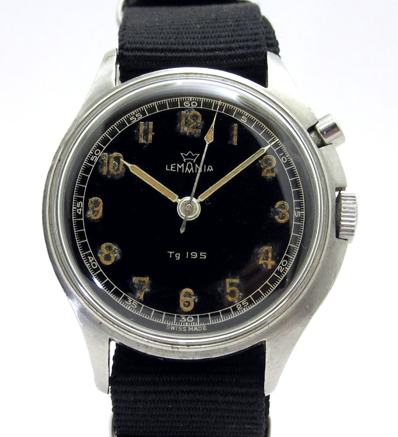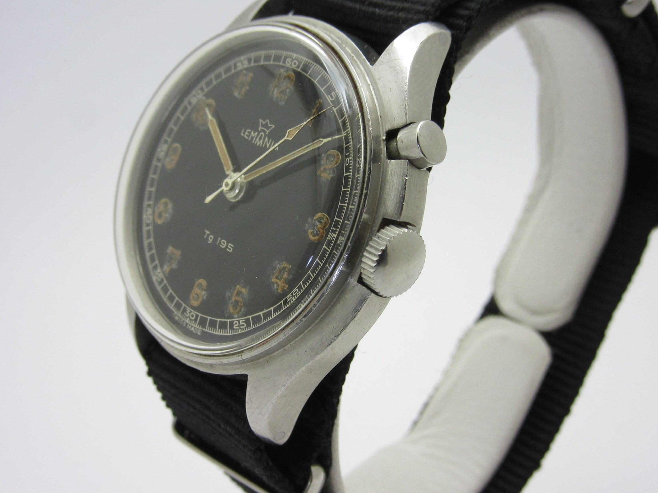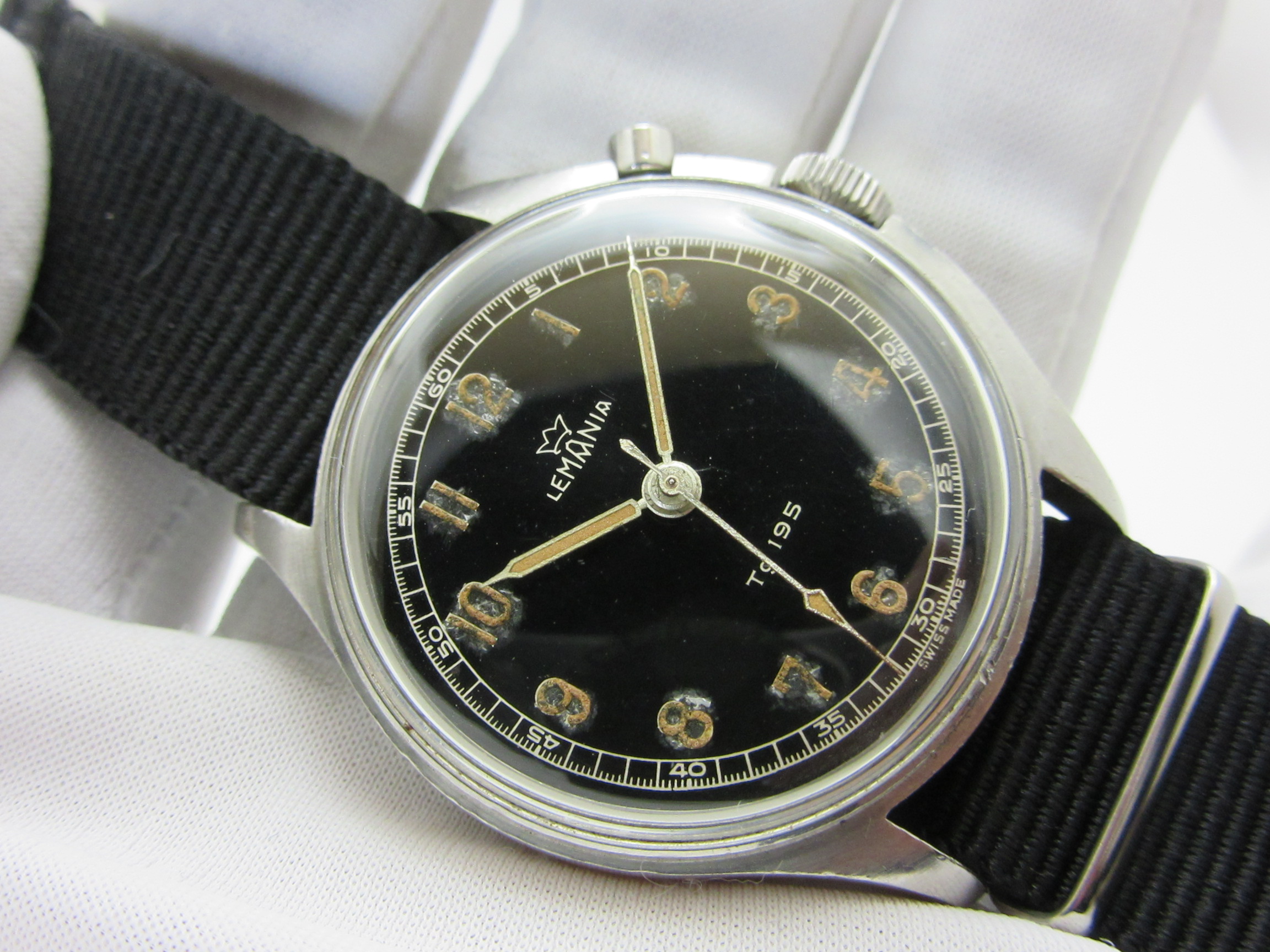 LEMANIA レマニア ”ブラックミラーダイヤル スウェーデン空軍 Tg195” 1957年製 ワンプッシュクロノグラフ 弊社にてOH済が入荷致しました