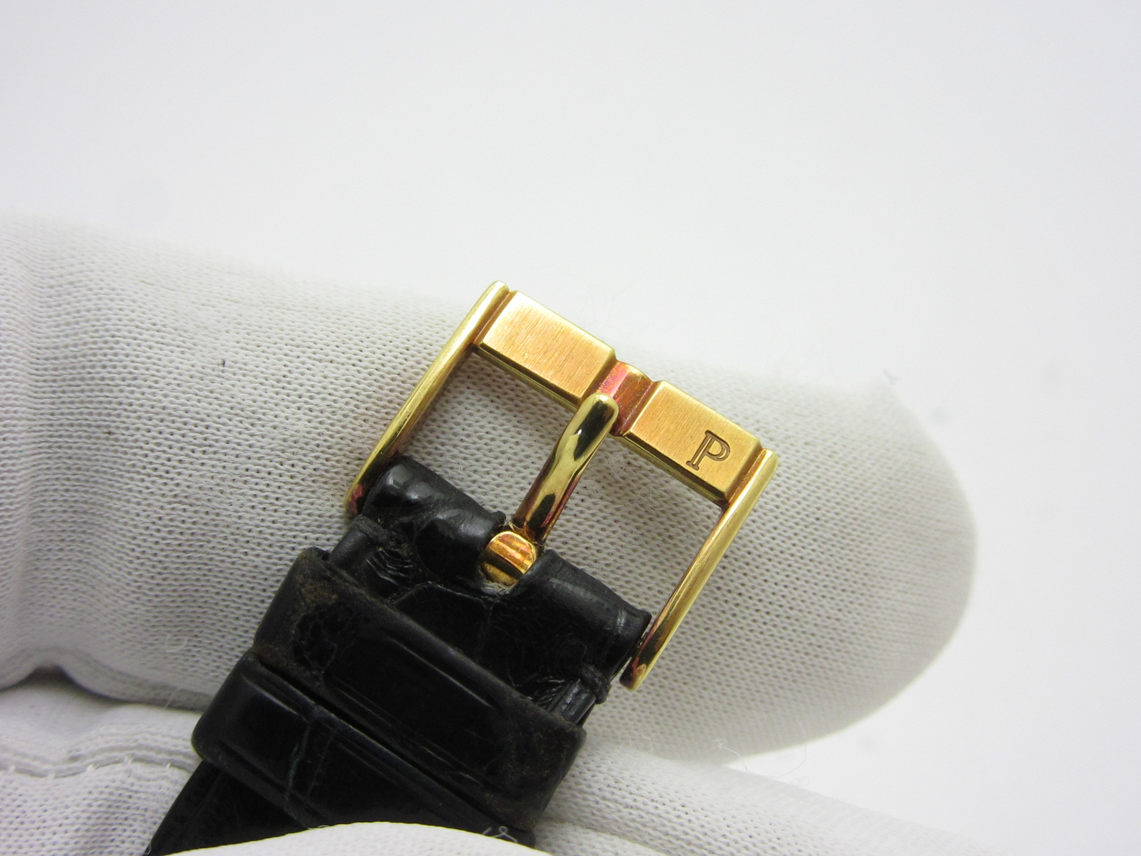 • 素材 : K18YG無垢無垢  純正ダイヤモンド 手巻機械式ムーブCal.20P1  純正クロコダイルバンド(USED品) 純正K18YG無垢尾錠