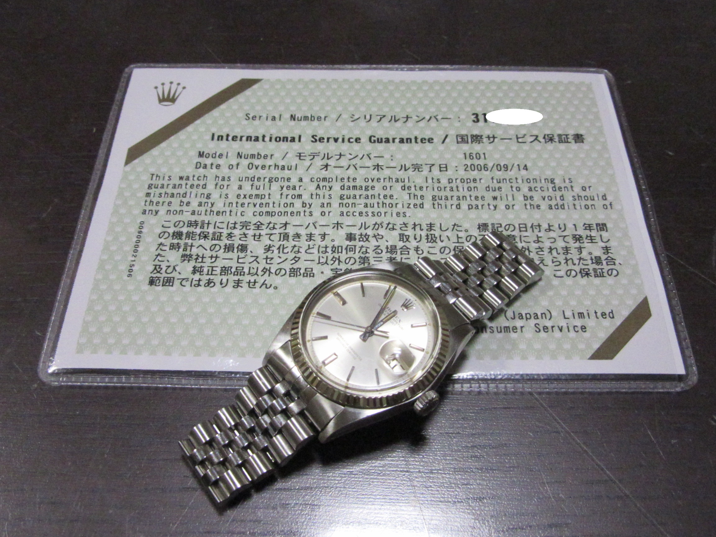 ロレックス ROLEX ”デイトジャスト Ref-1601” WGベゼル オールトリチウム Sir-317※※※※(1972年製) ジュビリーハードブレスレット62510H/FF555 CL7 国際サービス保証書(2006/09)付属