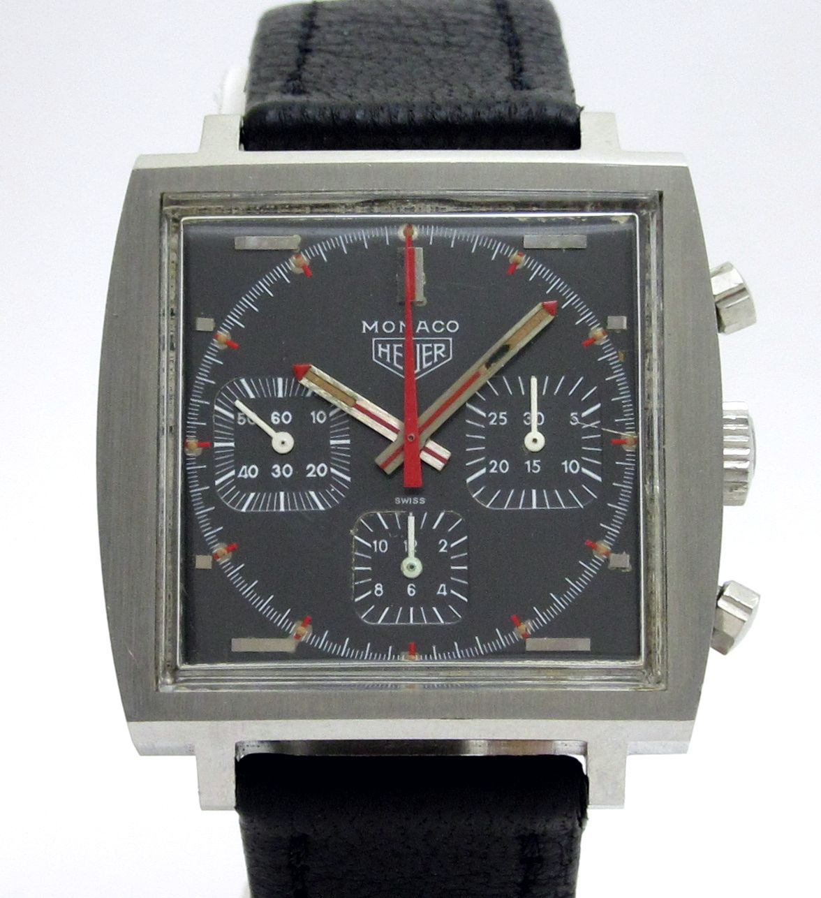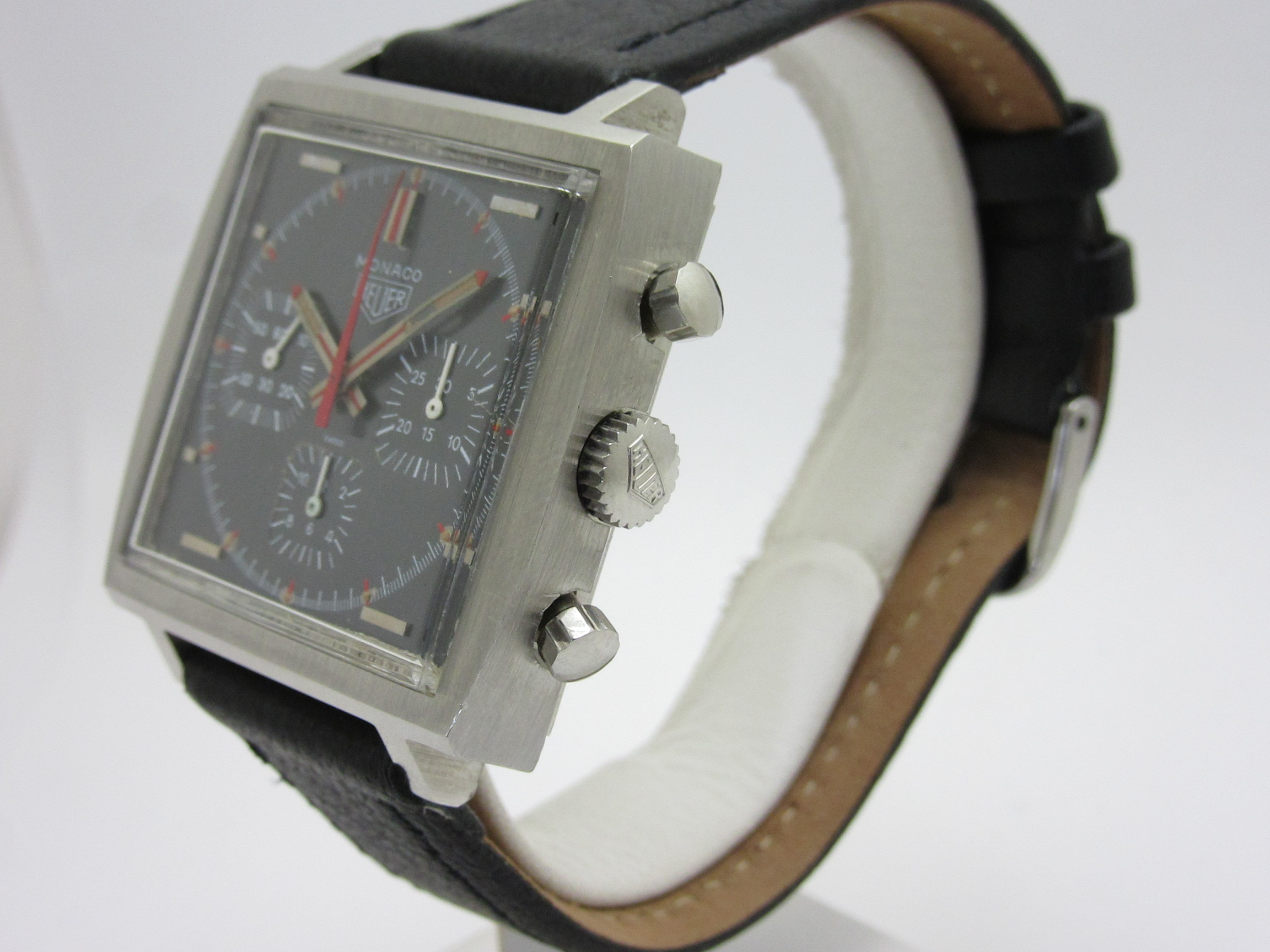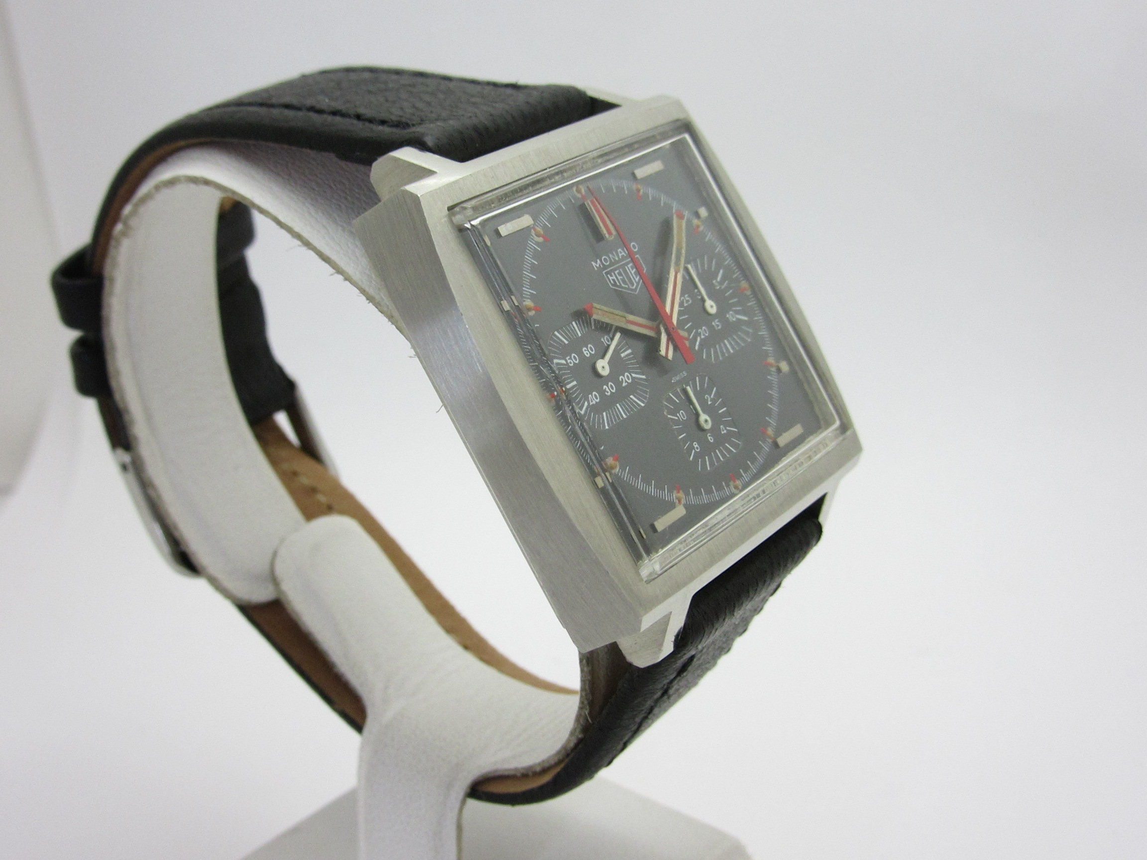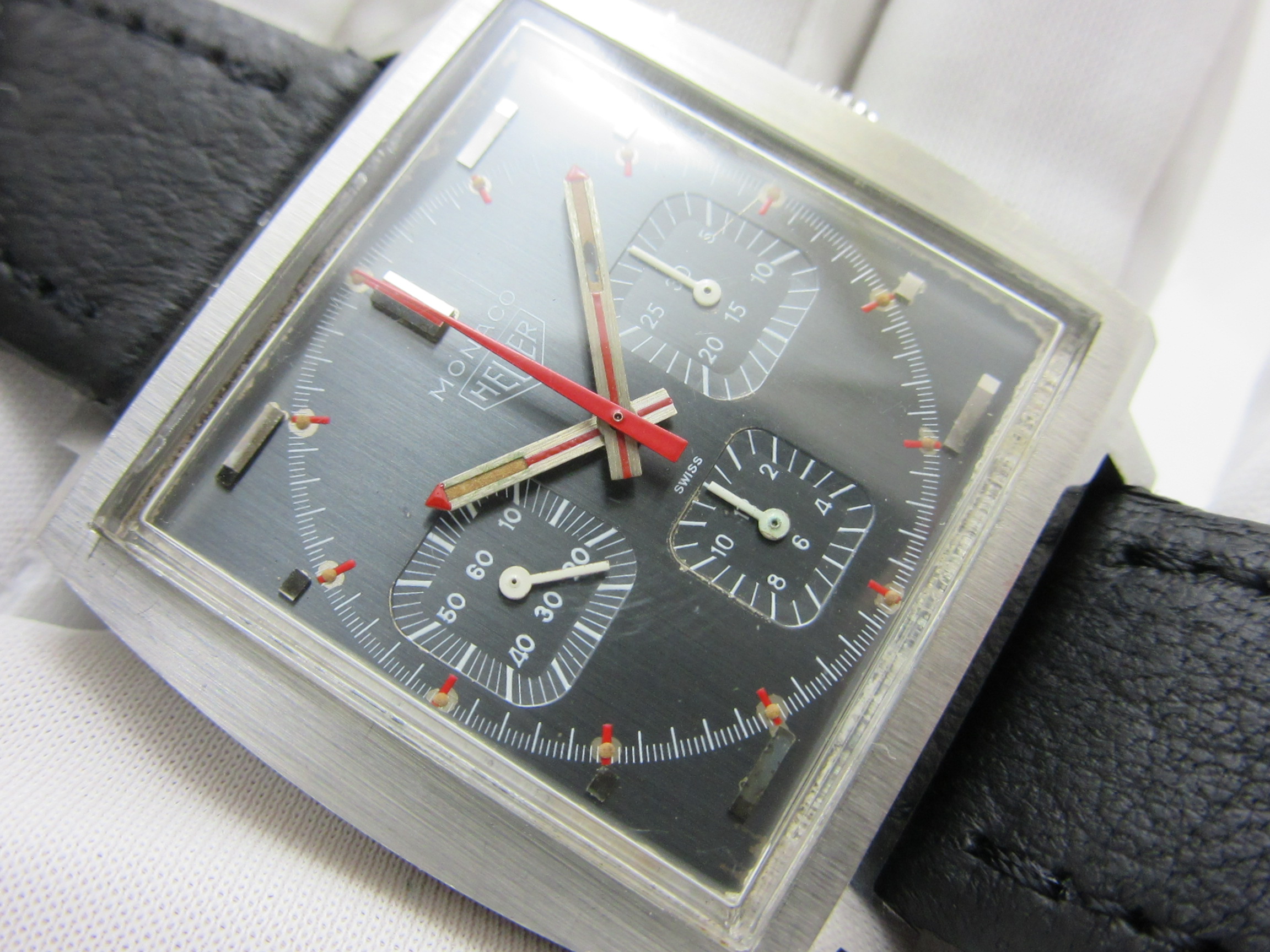 スクエアケースのクロノグラフの傑作、1970年代の『ホイヤー モナコ』の手巻きモデルです。