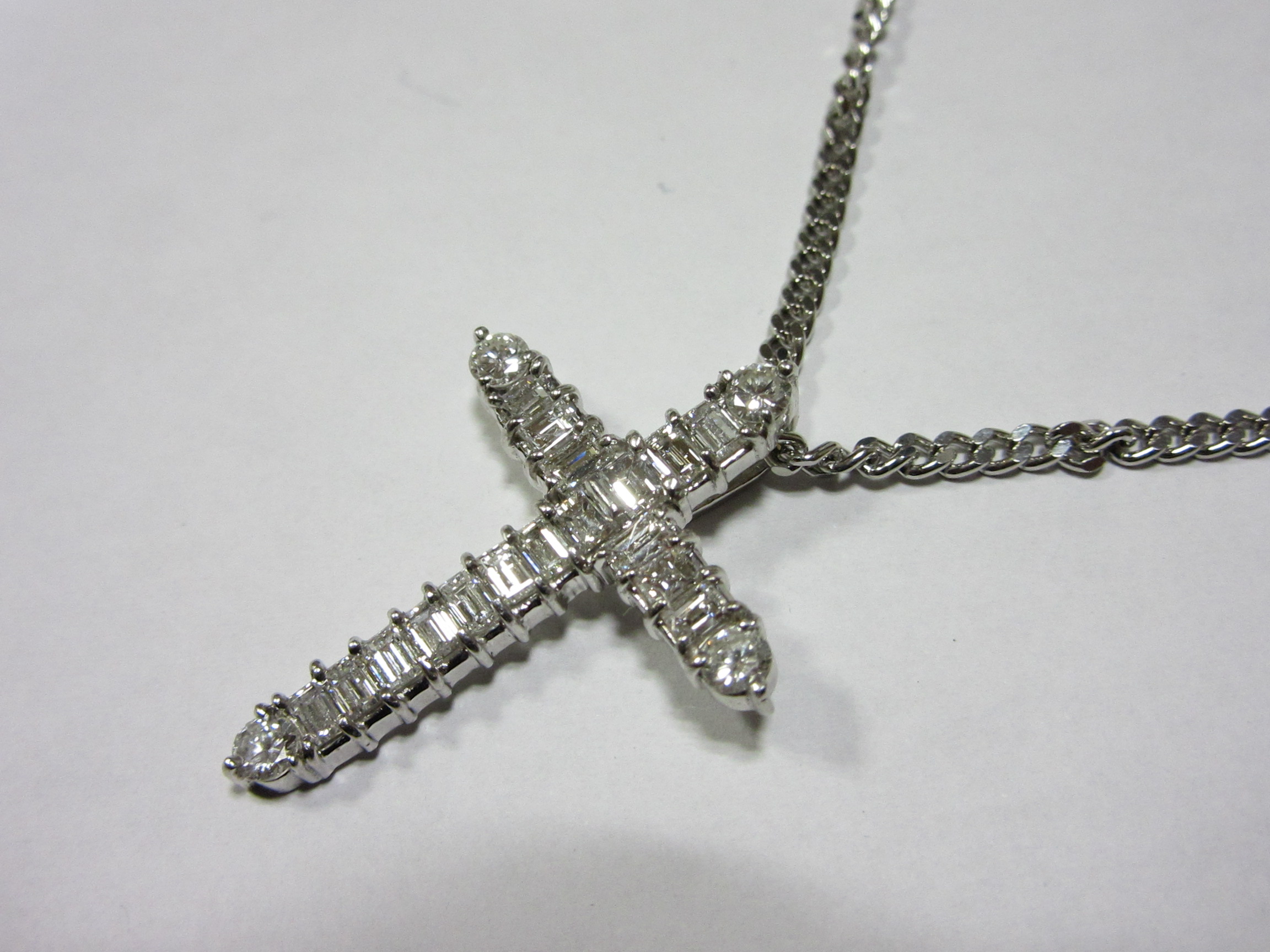 PT900製ダイヤモンドクロスペンダント 2.32t 6.2g & PT850製 喜平 ネックレス 15g 50cm ペンダントネックレスセットが入荷致しました。