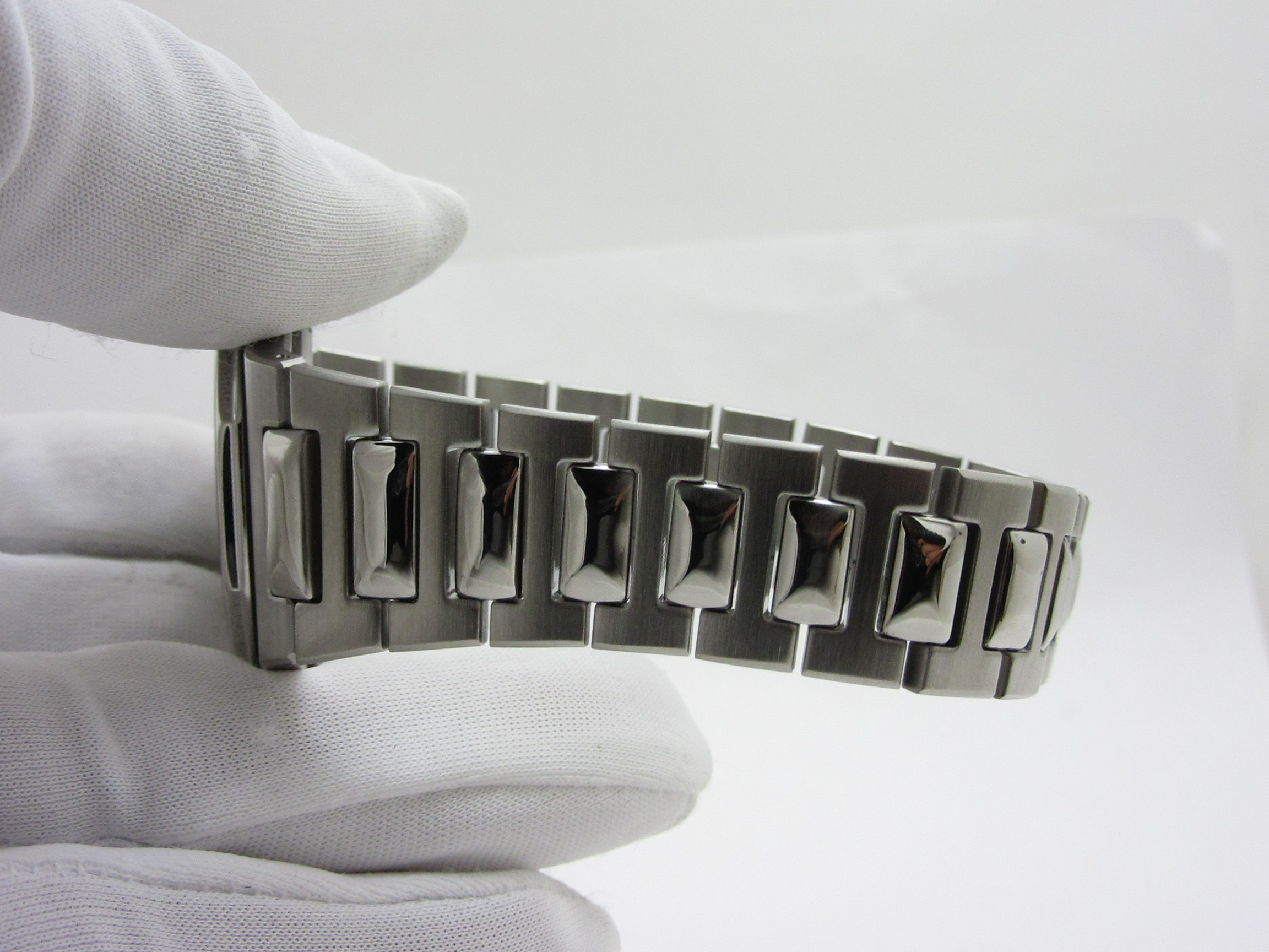 ケースとブレスレットの一体型のデザインは、上品で高級感があります。