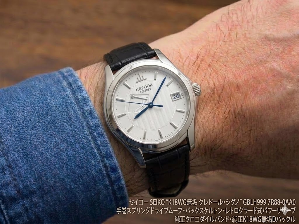 セイコー SEIKO ”K18WG無垢 クレドール・シグノ” GBLH999 7R88-0AA0 手巻スプリングドライブムーブ・バックスケルトン・レトログラード式パワーリザーブ