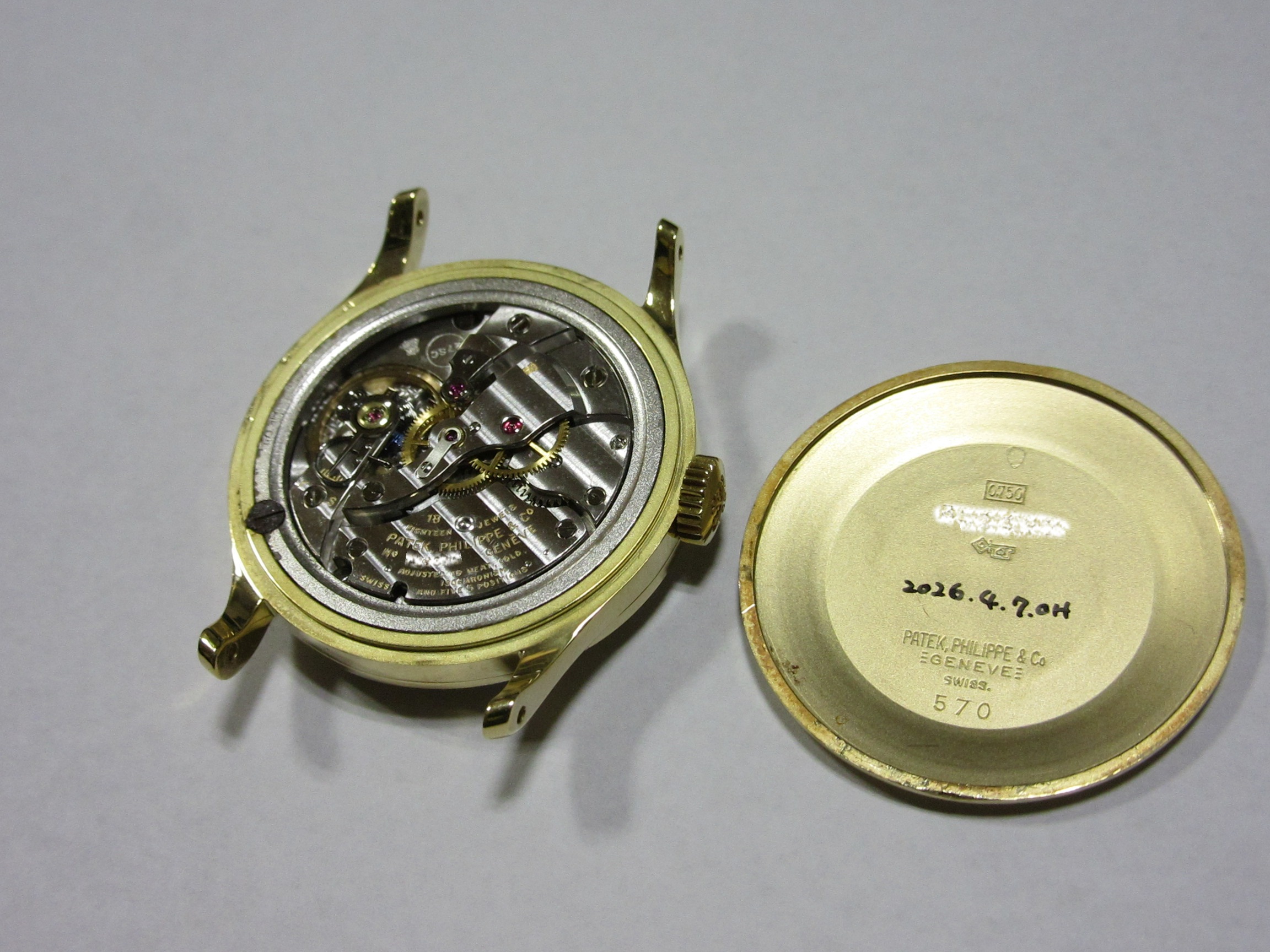 パテックフィリップ(PATEK PHILIPPE) ”ビッグケース カラトラバ Ref-570” 象嵌文字盤 K18YG無垢 機械式手巻ムーブ Cal.27SC 弊社にてOH済