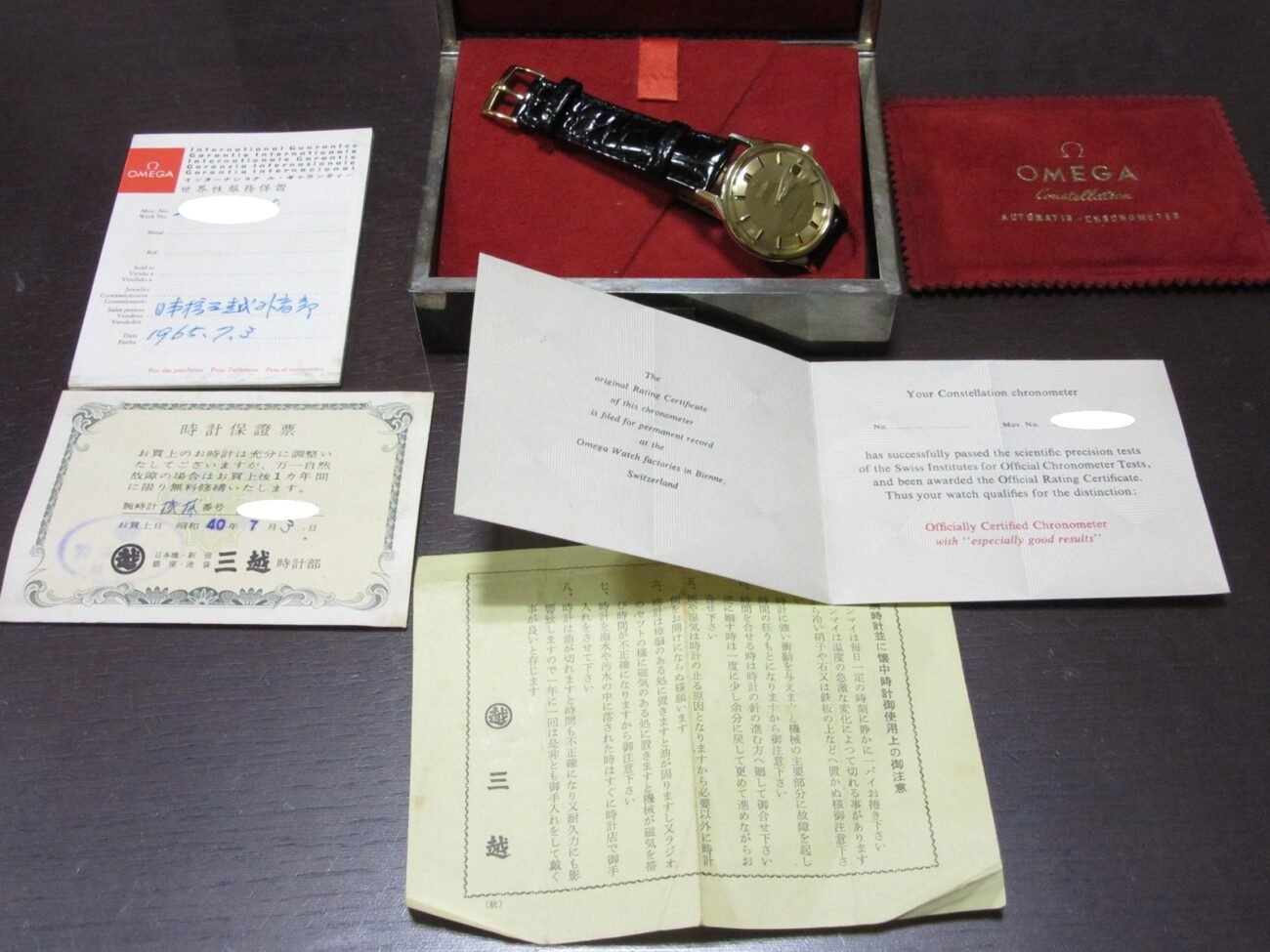 国内正規ギャランティ(1965/7/3)・クロノメータ証明書・オメガ社スターリングシルバー950製BOX付属